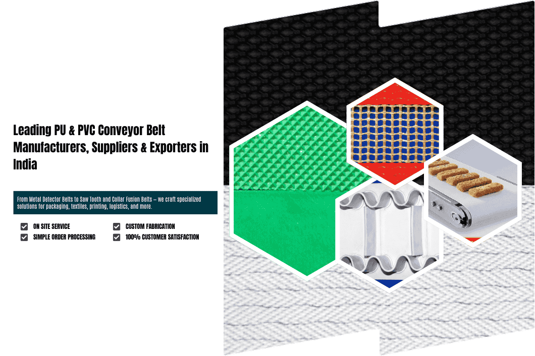 Leading Manufacturers of Industrial Conveyor Belts, PVC Conveyor Belts, PU Conveyor Belts, Cleated Conveyor Belts, Food Grade Conveyor Belts, Jogging Belts, Tea Leaf Conveyor Belts — servicing industries from food processing to automotive.